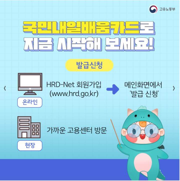 신청 방법 | HRD-Net 온라인 또는 고용센터 방문 신청 | www.hrd.go.kr |